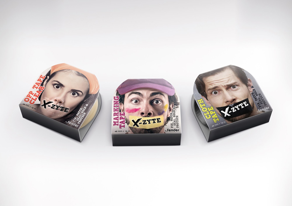 Креативная студия Prompt Design (Тайланд) разработала необычный, позитивный дизайн упаковки для клейкой ленты 'X-Zyte'. Обычный скучный товар превращается в предмет развлечения.