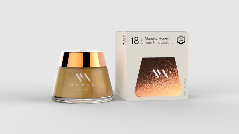 Новозеландская компания Three Peaks Honey продает редкий мёд Манука. Его позиционирование как ультрапремиального продукта требует соответствующей упаковки.