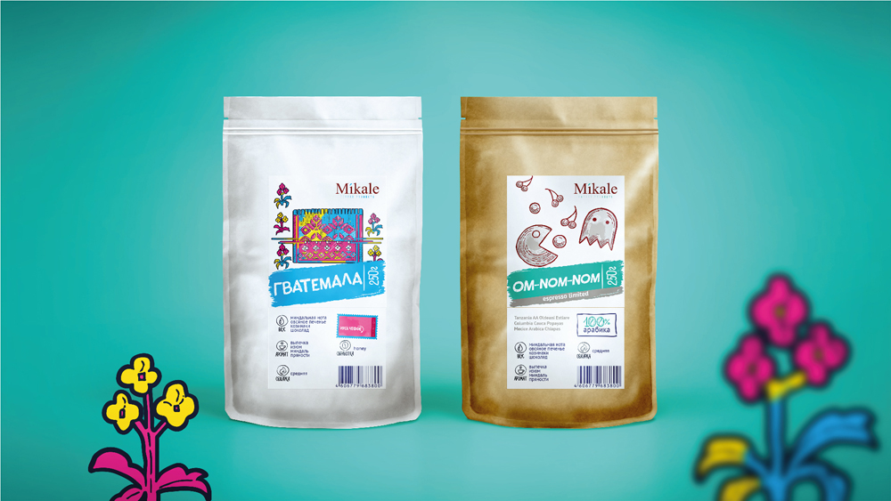 Студия geek разработала дизайн этикетки и упаковки для кофе компании Mikale. Ассортимент кофе компании Mikale очень широкий. Подчеркнуть и передать оттенки каждого вкуса получилось с помощью уникального дизайна каждой из этикеток.