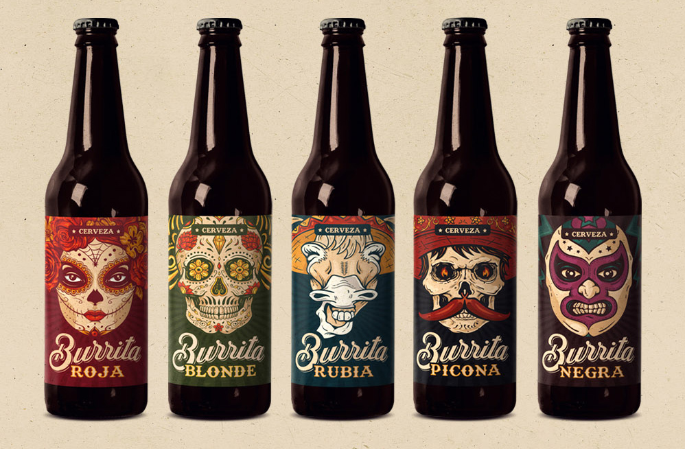 В небольшой пивоварни из Буэнос-Айреса захотели, чтобы упаковка напоминала о Мексике. Поэтому дизайнер использовал персонажи и элементы, характерные для этой страны.