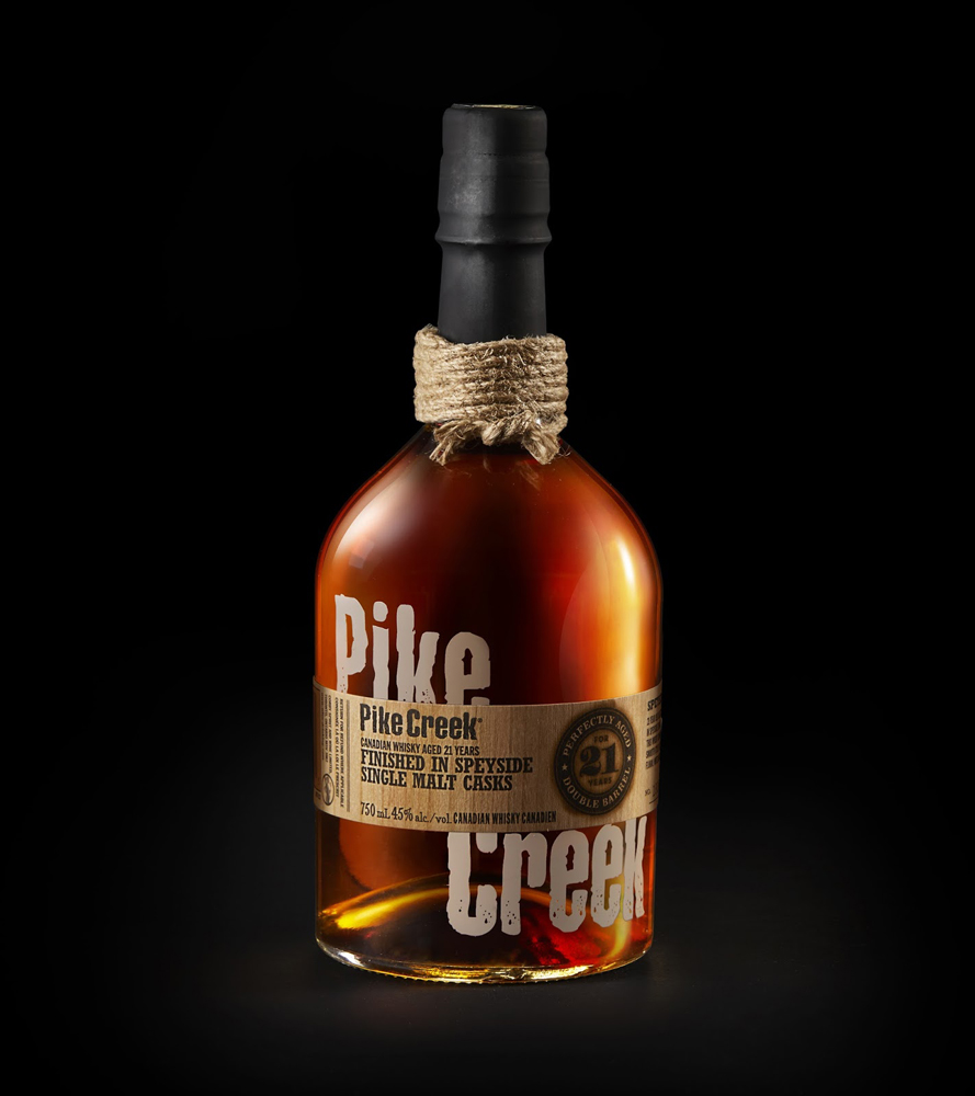 Виски Pike Creek 21 лет выдержки выпущено тиражом 3 900 бутылок. Его деревянная этикетка напоминает о бочках, в которых долгие годы выдерживается этот эксклюзивный виски.
