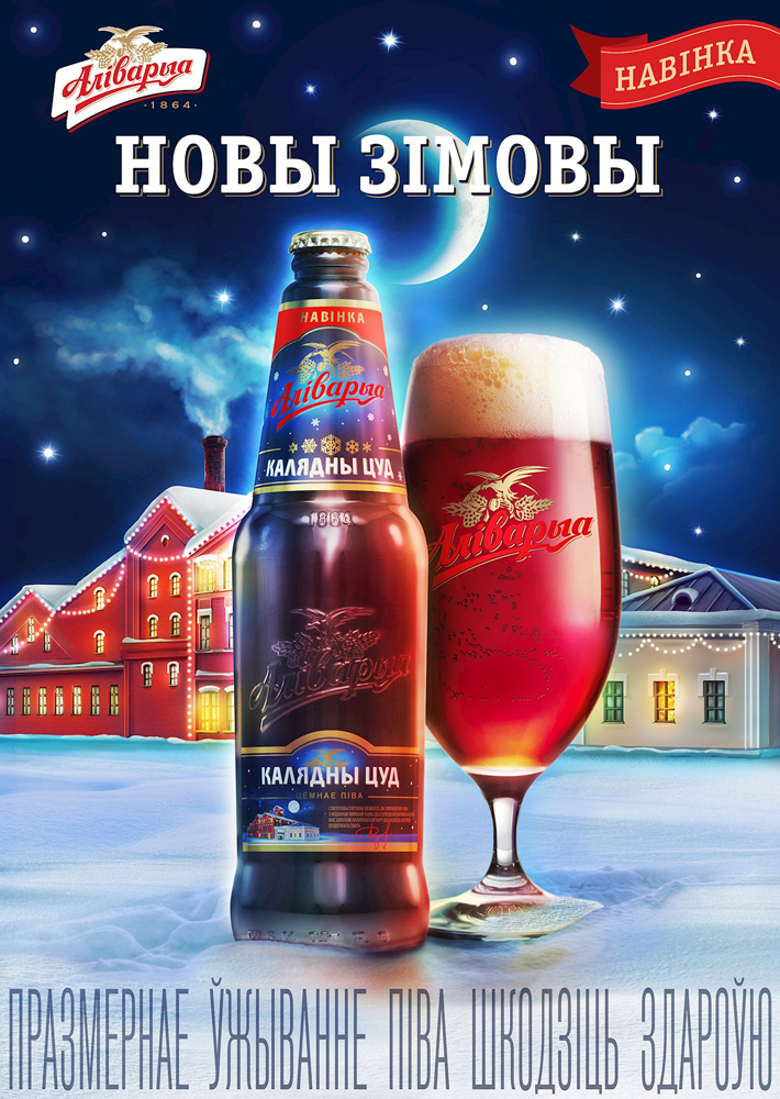 Пивоваренная компания «Оливария» подготовила к Рождеству и Новому году специальное праздничное пиво. «Аливария Калядны Цуд» – это новое темное пиво, сваренное для долгих зимних вечеров. Новый сорт характеризуется приглушенным ароматом карамели и ванили, мягко переходящим в кофейные ноты.