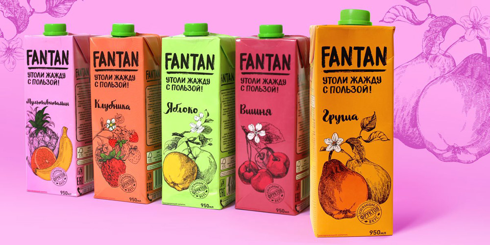 Брендинговое агентство Weavers Brand Consultancy разработало новый дизайн упаковки для сокосодержащих напитков Fantan.