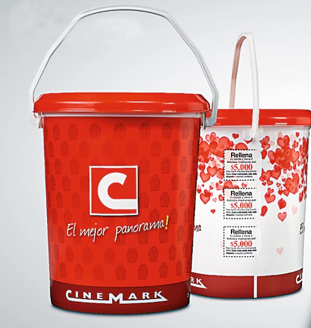 Чилийская компания Cinemark, филиал американской сети кинотеатров, вознаграждает зрителей за верность многоразовыми ведёрками для попкорна, снабжёнными отрывными вплавленными этикетками IML с купонами на скидку.