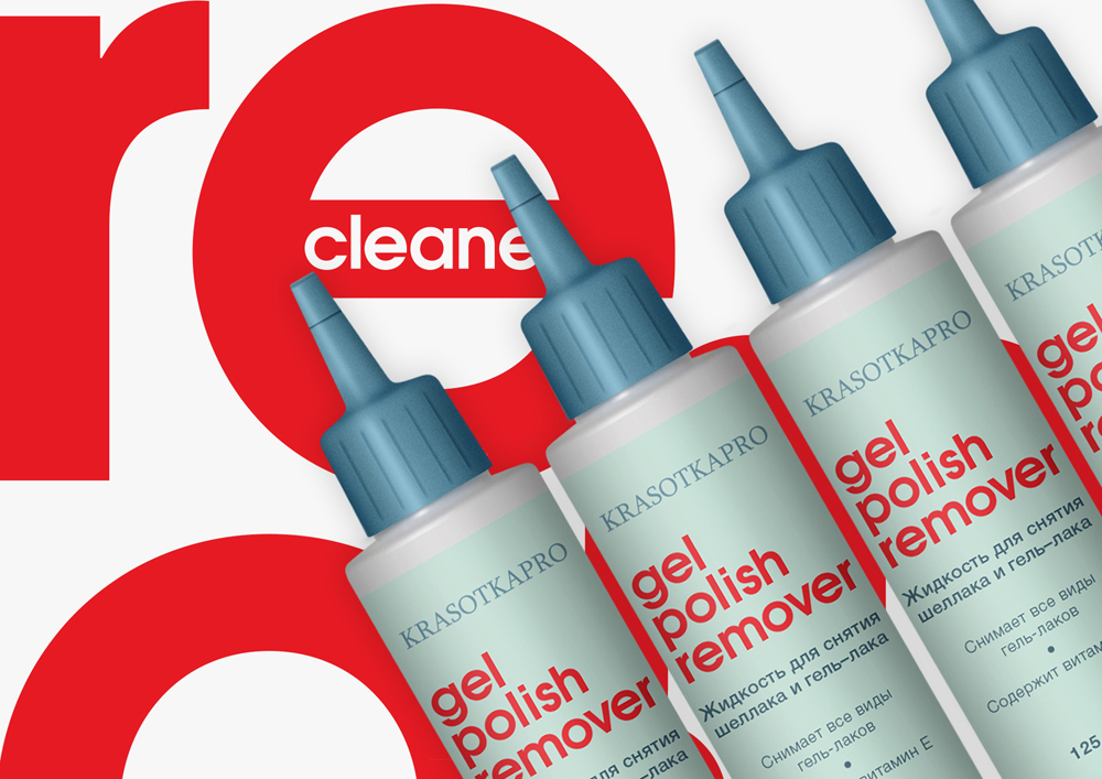 В студии WeDesign были разработаны новый визуальный образ и дизайн упаковки жидкости для снятия лака из нескольких SKU. Чистое, шрифтовое визуально-графическое решение определяет принадлежность товара к косметическим очистительным средствам, а лаконизм и сдержанность типографики подчеркивает профессионализм и надежность.