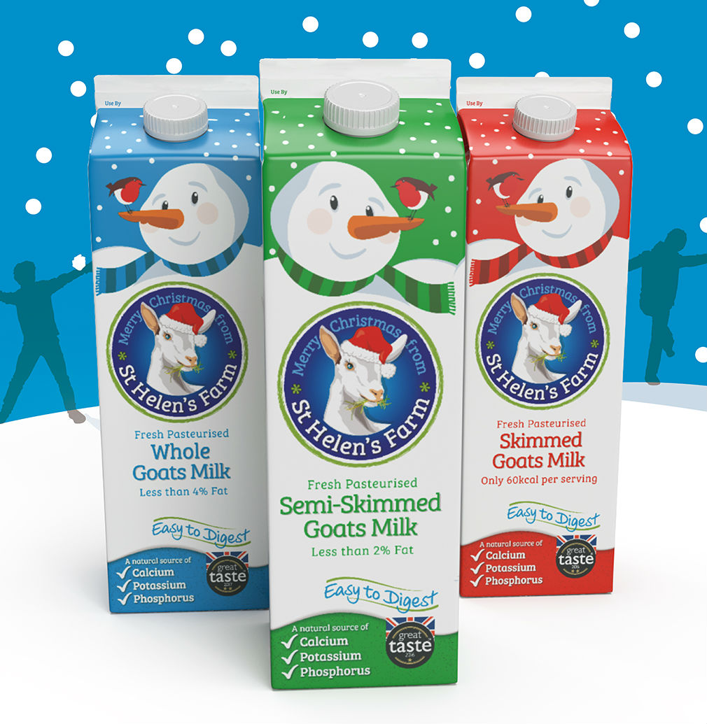 Британская компания St Helen’s Farm, производящая козье молоко, выпустила продукцию в упаковке с новым зимним дизайном. Новая упаковка создана для трёх видов молока.