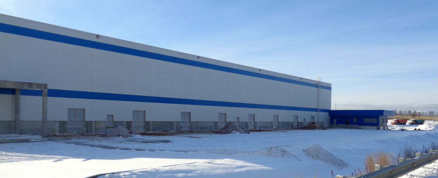 Практически закончены наружные сети, выполнен нижний слой асфальта в погрузочной зоне, въезде и стоянки легкового а/транспорта (16 тыс. кв. м), промежуточный склад джамбо-рулонов и склад сырья, также выполнены ограждающие конструкции и кровля.