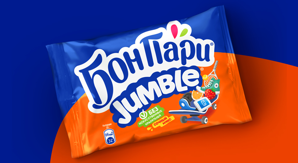 Слово jumble многозначное – его можно перевести с английского как путаница, кавардак или смешивать, перемешивать. И многие знают, что Jumble – название популярного бренда жевательного мармелада (компания «Нестле Россия»), для которого агентство Depot WPF сделало редизайн логотипа и упаковки.