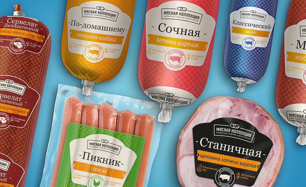 Агентство A.STUDIO провело редизайн торговой марки «Мясная коллекция» для Кузбасского пищевого комбината. Ассортимент включает в себя такие мясные изделия как: колбаса, рулька, ветчина, паштет, сосиски и другие колбасные изделия. Цель проекта — навести порядок в линейке и привести к одному визуальному знаменателю разные продукты из «коллекции». Дизайн упаковки также должен легко считываться и просто тиражироваться. Это позволит линейке развиваться без усложнений и оставаться при этом узнаваемой.