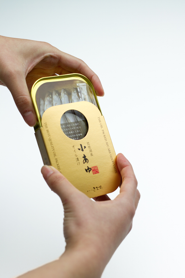 Японская компания Kimura Suisan Co.,Ltd. выпускает рыбку Koayu, которая считается деликатесом в регионе. Дизайн упаковки создали в студии Masahiro Minami Design.