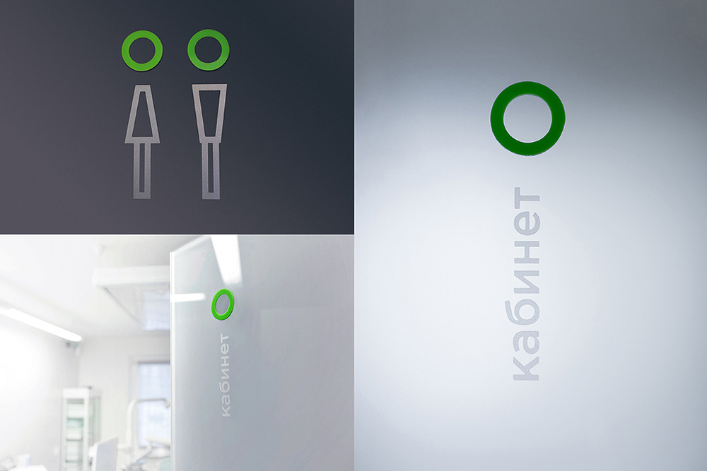 Визуальные составляющие фирменного стиля призваны говорить об экспертности и профессионализме — это важно, когда речь идёт о медицине. Лаконичный логотип, чистые геометрические решения и спокойный зелёный цвет решают эту задачу. Базовые элементы с лёгкостью встраиваются в интерьер помещения и могут быть адаптированы для различных информационных носителей.