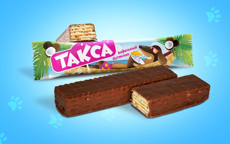 Выпуск вафельных батончиков был начат на предприятии еще в прошлом году. Специалисты фабрики разработали абсолютно новое лакомство, до этого «ТАКФ» не имела в своем ассортименте изделий подобного формата и вкуса. Для прослойки вафельных листов используется кокосовый крем, он гармонично сочетается с молочным шоколадом, которым глазирован батончик. Удлиненная форма конфеты ассоциирует название торговой марки с известной породой домашнего питомца, а яркий дизайн перекликается с задорной таксой, которая стал лицом бренда. Прямые и понятные образы дают большие возможности для коммуникации с потребителями.