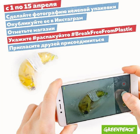 Гринпис России запустил марафон #Распакуйэто и предлагает выкладывать в Instagram фотографии продуктов, завёрнутых в самую глупую пластиковую упаковку. Таким образом Гринпис хочет привлечь внимание к проблеме одноразового пластика, который за считаные минуты становится мусором, копится на свалках и загрязняет почву и воду.
