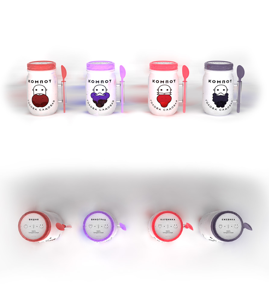 Дизайнер Евгений Безденежных (Москва) представил проект по созданию фирменного стиля и упаковки для компота "Голова Садовая".