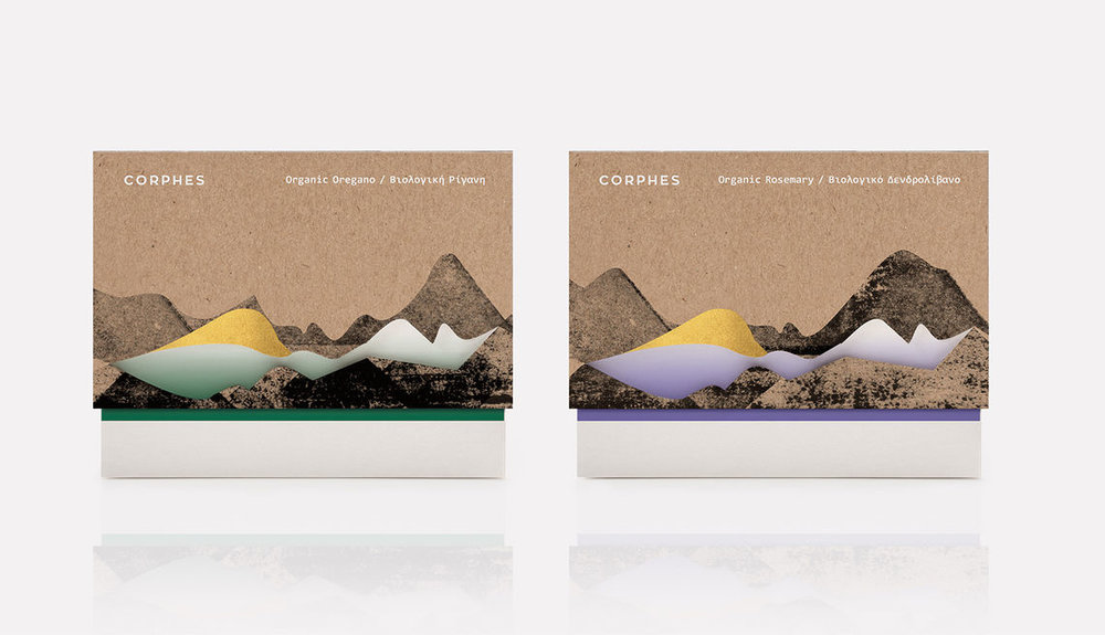 Греческая студия Luminous Design Group разработала дизайн упаковки органических специй Corphes. Особенность бренда в том, что специи выращиваются в высокогорной местности Греции.