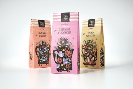 Мария Пономарева (независимый арт-директор, Нью-Йорк) разработала дизайн упаковки новой линейки травяного чая «Травы и пчёлы» с сушеными фруктами, ягодами и гранулированным медом в составе для компании «Медовый дом».
