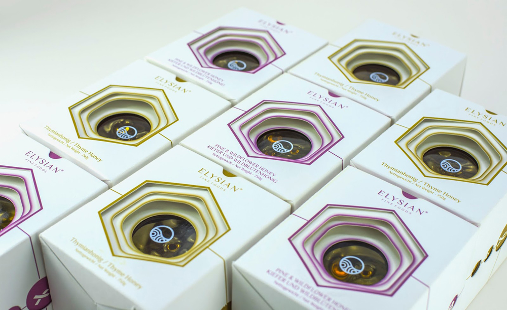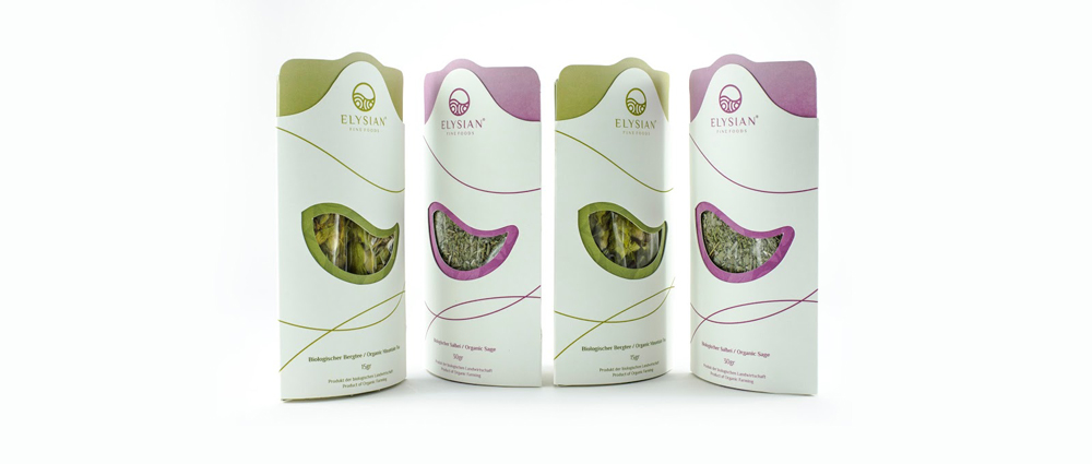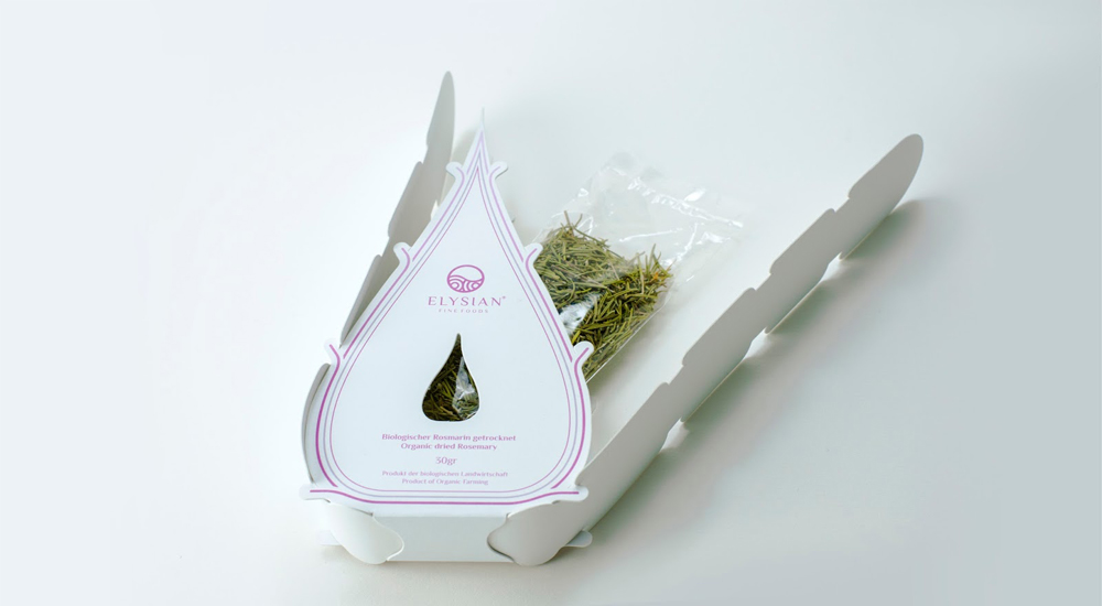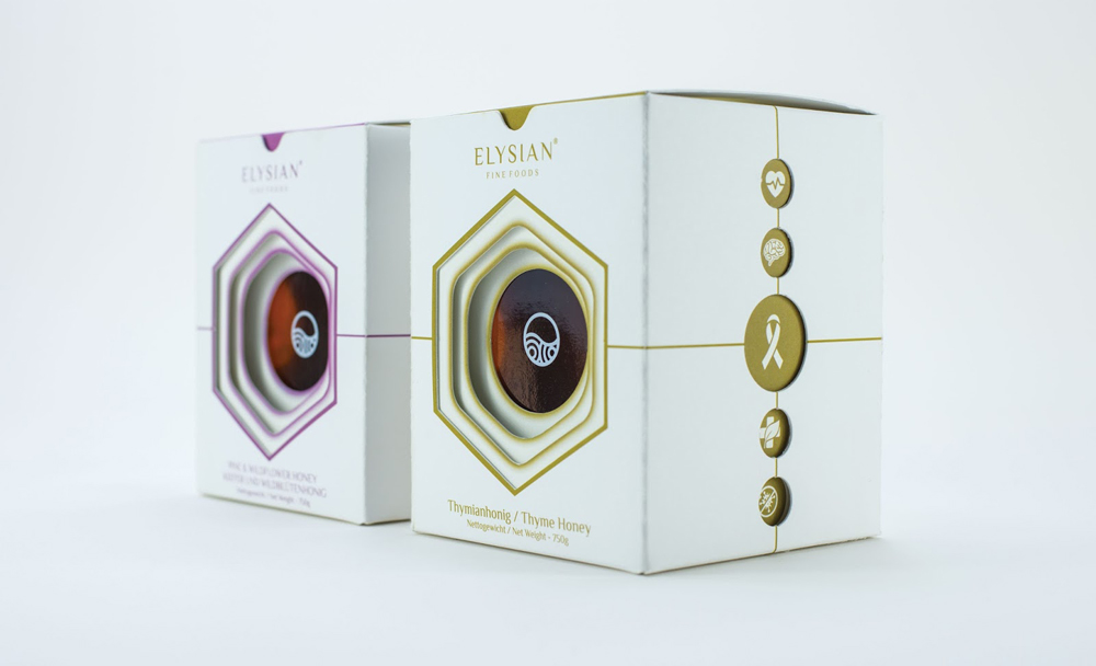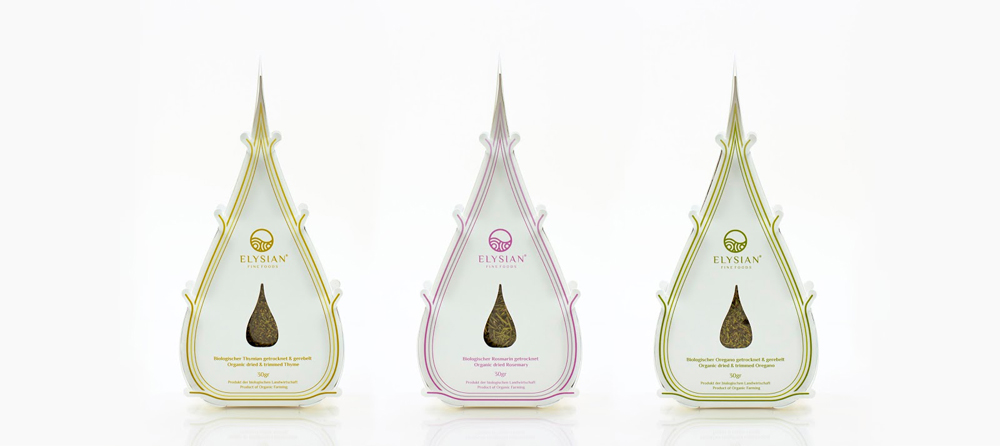 Греческая компания Elysian Fine Foods выпускает линейку натуральной местной продукции, в которую входят тимьяновый мёд, приправы для кулинарии и травы. В студии Michalis Kanonis разработана оригинальная структурная упаковка, которая выделяет продукцию из конкурентной массы.