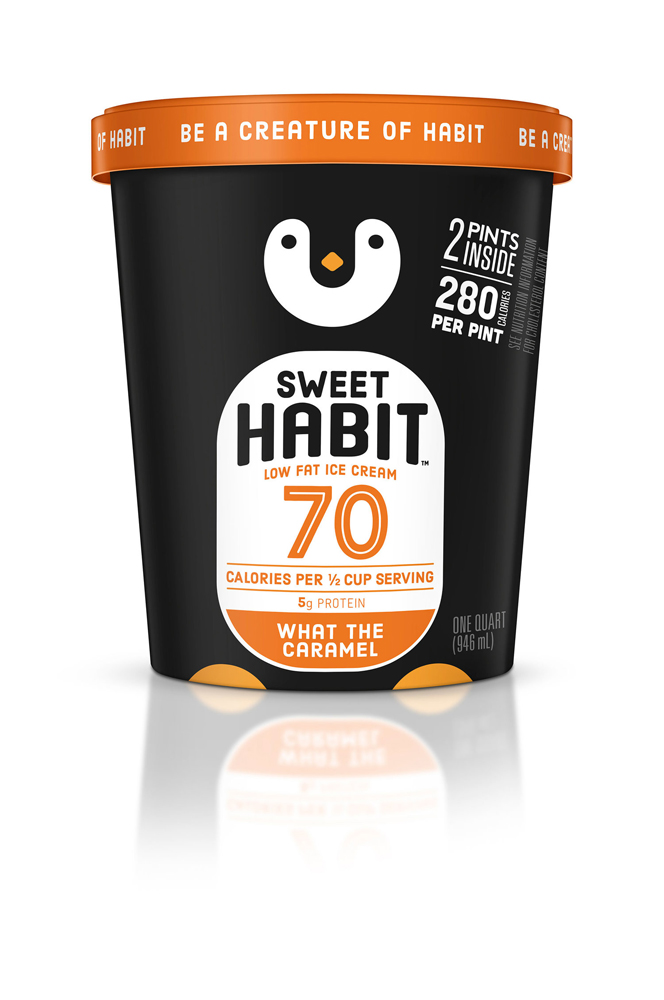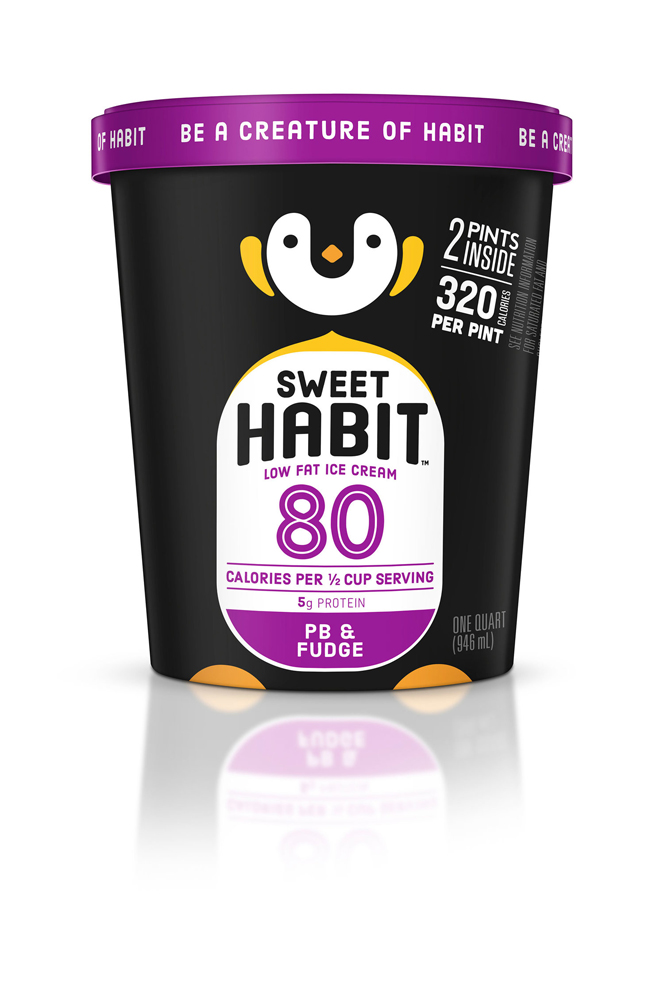 Sweet Habit - это новинка для сладкоежек. Это мороженое с низким содержанием калорий и большим количеством белка. Дизайнеры Sterling Brands создали образ, который обладает индивидуальностью. Он игривый, яркий и запоминающийся.