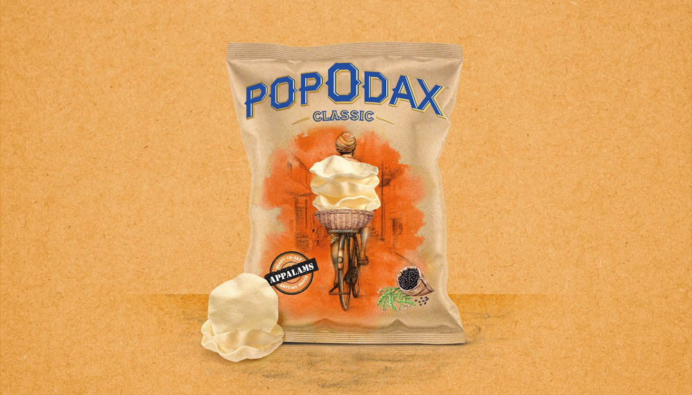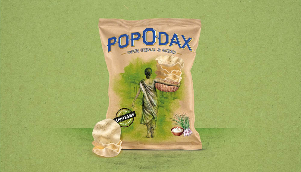 В студии придумали название Popodax. Оно происходит от 'popodum' (альтернативная форма слова 'пападам'). Для создания визуального языка, дизайнеры обратились к прошлому и вспомнили о koodais - традиционных корзинах, в которых продавались лепешки много лет назад.