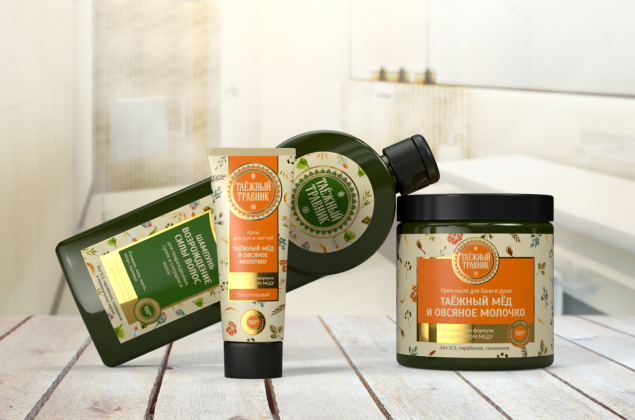 Студия DEZA обновила дизайн упаковок серии косметических продуктов «Таежный травник». Перед дизайнерами стояла задача передать натуральность, растительное происхождение косметики, а также выделиться на полке среди конкурентов.