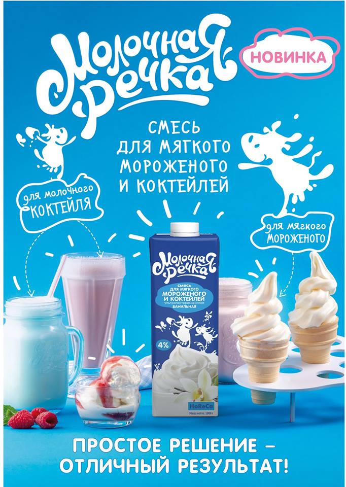 «Комос Групп» выпустил оригинальный продукт - готовую смесь для приготовления мягкого мороженого и коктейлей «Молочная речка», который уже в июне появится на прилавках магазинов.