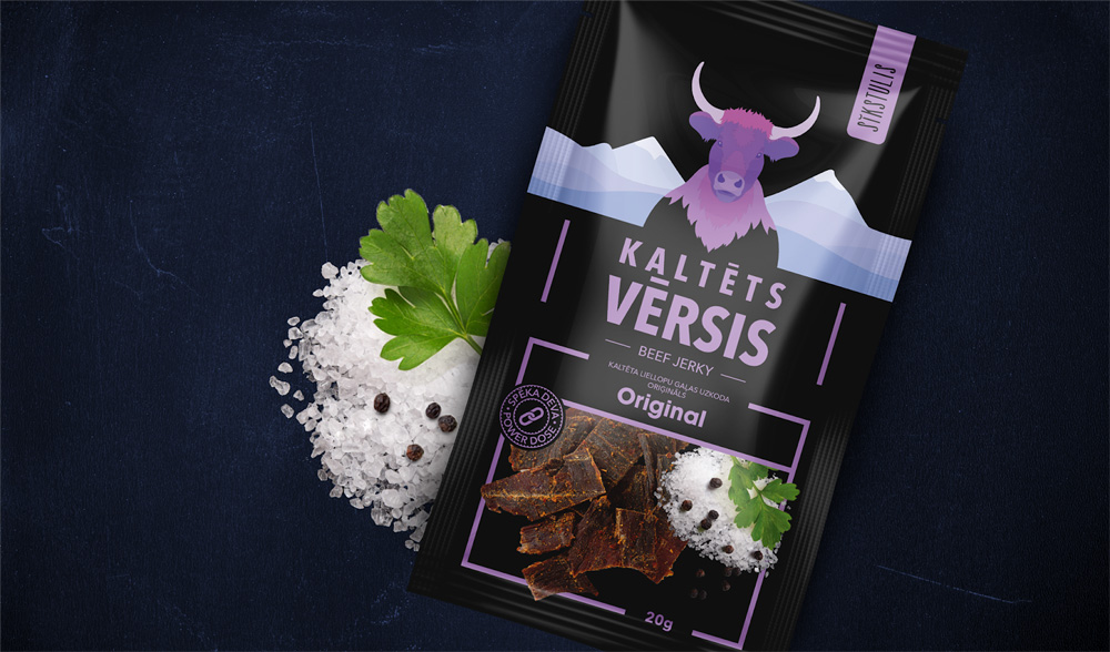 Контрастный, маскулинный дизайн рассчитан на мужскую аудиторию. Обилие черного говорит о премиальности продукта. Бык обеспечивает узнаваемость бренду, а фудзона помогает быстро понять, что внутри упаковки.