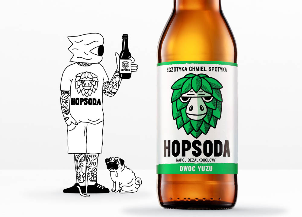 В Польше появился новый бренд безалкогольных напитков Hopsoda. Его необычные ингредиенты и молодежную направленность отразили в дизайне упаковки специалисты студии Ostecx Créative.