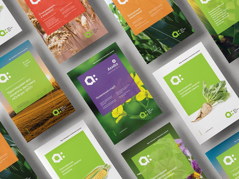 После переговоров с собственниками компании и представителями отдела маркетинга был сформирован проект по ребрендингу «Агро Эксперт Груп». Проект включал в себя исследование потребителей продукции, разработку рыночного позиционирования и платформы бренда, разработку новой визуальной идентичности и необходимых для работы коммуникационных материалов компании: корпоративных носителей, выставочных стендов, сервисных автомобилей, каталога, буклетов и прочих раздаточных материалов, униформы сотрудников и многого другого.