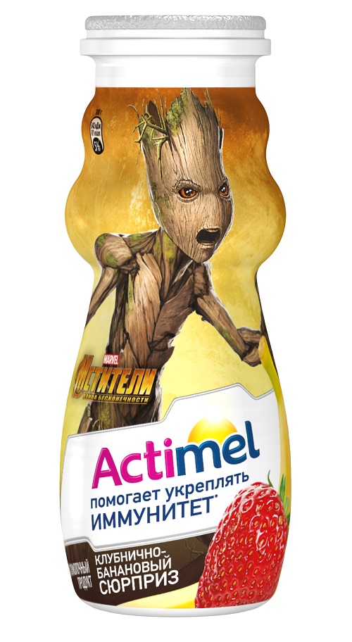 Могущественные супергерои, которых мы видели совсем недавно в новом блокбастере MARVEL «Мстители: Война Бесконечности», особенно популярны среди юной аудитории. Для создания упаковок детского «Актимель» использованы образы таких известных супергероев, как Человек-Паук, Железный человек, Халк, Черная Пантера, Грут и главный злодей киновселенной – Танос.