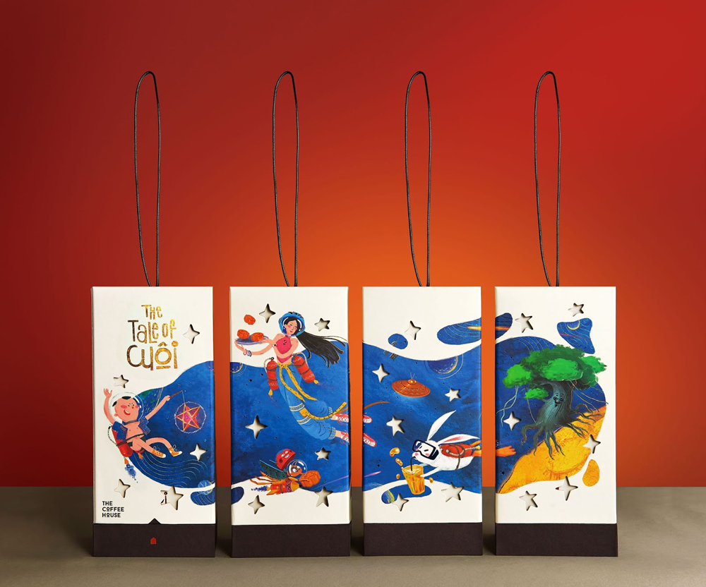 Вьетнамская студия The Purpose Group представила дизайн упаковки для лимитированной серии лунных пряников сети кофеен The Coffee House. Получилась комбинация из классических детских приданий о Празднике середины осени и небольших деталей стимпанк.
