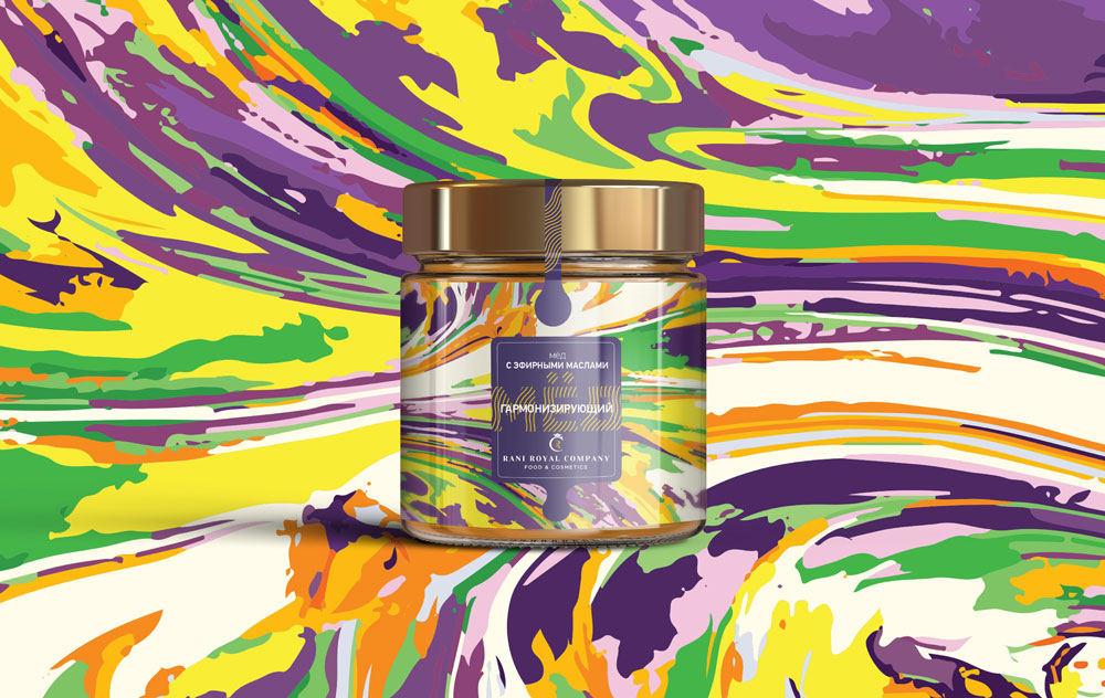 Обратившись к восточным мотивам и ярким цветам, дизайнеры SDVyG стремились создать при этом современную айдентику, ассоциирующуюся со здоровьем, жизнерадостностью и благополучием. Сочетание широкой палитры цветов подчеркивает гармонию тела и духа, укрепленную уникальной комбинацией эфирных масел, растительных экстрактов и мёда.