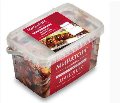 Для удобства потребителей шашлык "Нежный" выпускается в пластиковых ведёрках в расфасовке по 2 кг. И сохраняет свежесть до 11 суток при температуре хранения от -1,5 до 4 0С.