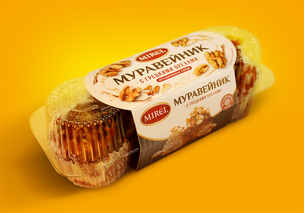 Торговая марка Mirel дополнила линейку легендарных пирожных «Муравейник» лимитированной серией с грецкими орехами и обратилась к специалистам Getbrand за концепт-дизайном.