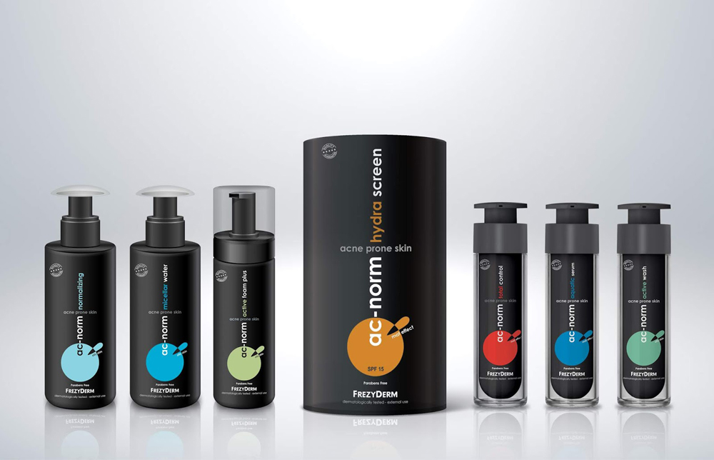 Греческая студия ABC Design разработала дизайн упаковки препаратов против акне Frezyderm. Четкий и современный дизайн должен прийтись по душе целевой аудитории продукта – тинейджерам.