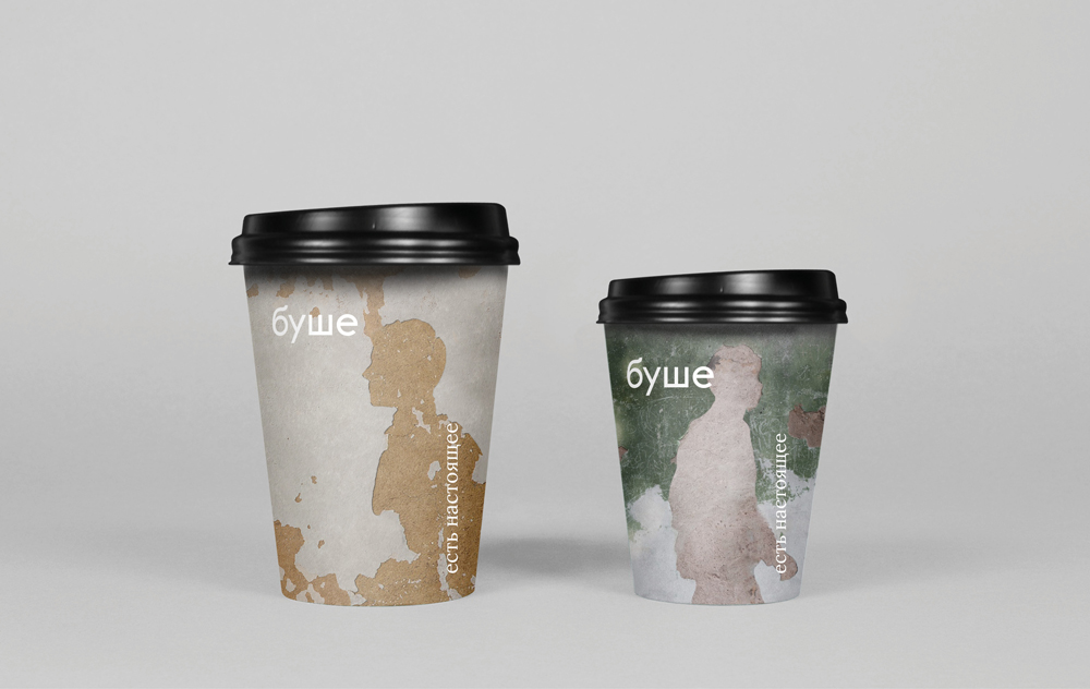 Философия буше выражается в простой формуле «Есть настоящее» и делает упор на содержании, а не на внешнем лоске. Опираясь на эту философию, была создана лаконичная айдентика на основе городских текстур, приглушенной палитры и монохромных черно-белых шрифтов. Цветовая основа интерьеров заведений была поддержана цветными граффити и так популярной сейчас трафаретной графикой, вдохновленной питерским стрит-артом. Визуальные акценты городской среды будут использоваться для всей печатной продукции - постеров, визиток, сувениров, упаковки, а также для наружной рекламы.