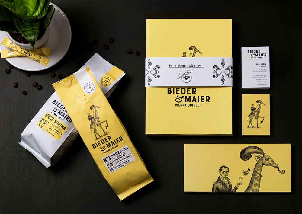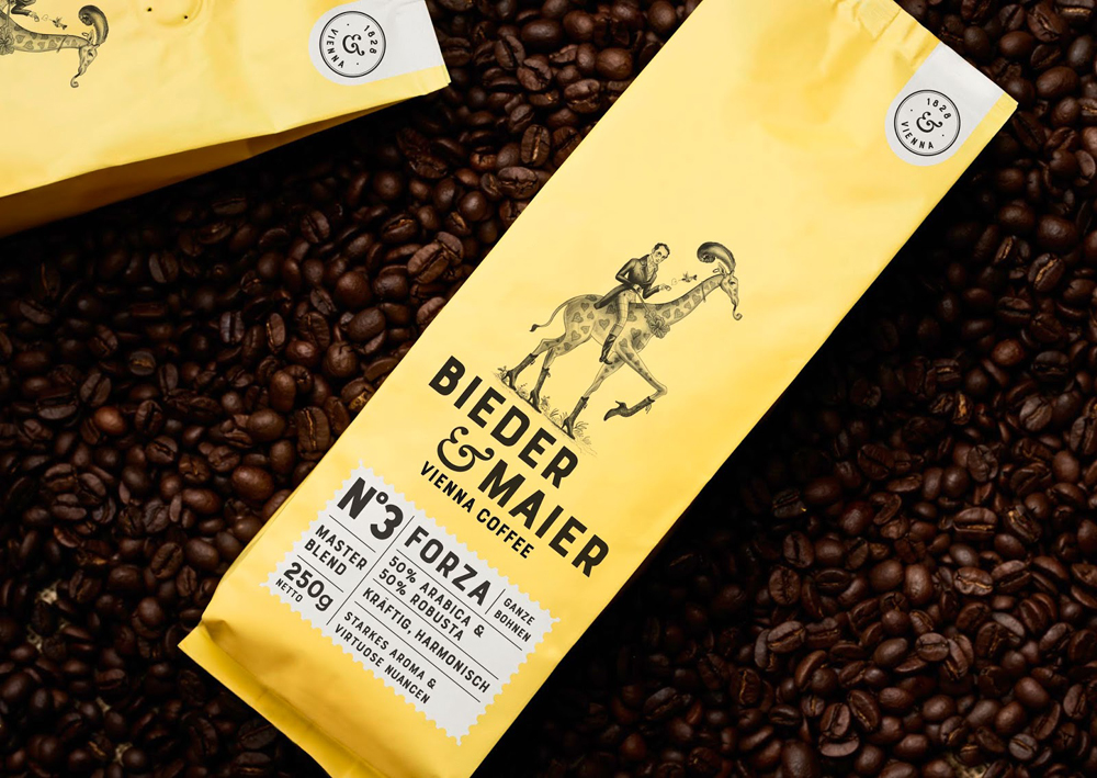 В агентстве Kobza and the Hungry Eyes GmbH создан ребрендинг и дизайн упаковки для венской кофейни Bieder & Maier. В основу айдентики легли история и традиции венских кофеен.