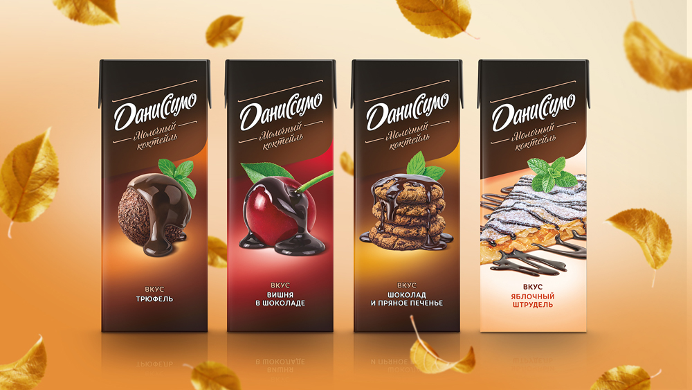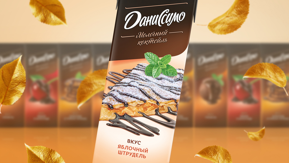Для бренда коктейлей «Даниссимо» сезонные вкусы уже стали частью годового маркетингового плана. Они поддерживают актуальность продукта, и гармонируя с покупательскими настроениями, укрепляют эмоциональную связь с потребителем. Упаковка осеннего коктейля со вкусом яблочного штруделя продолжает тему изысканных лакомств, при этом выделяется в линейке, привлекая внимание к аппетитной сезонной новинке.