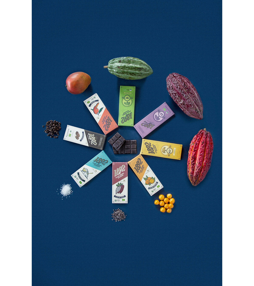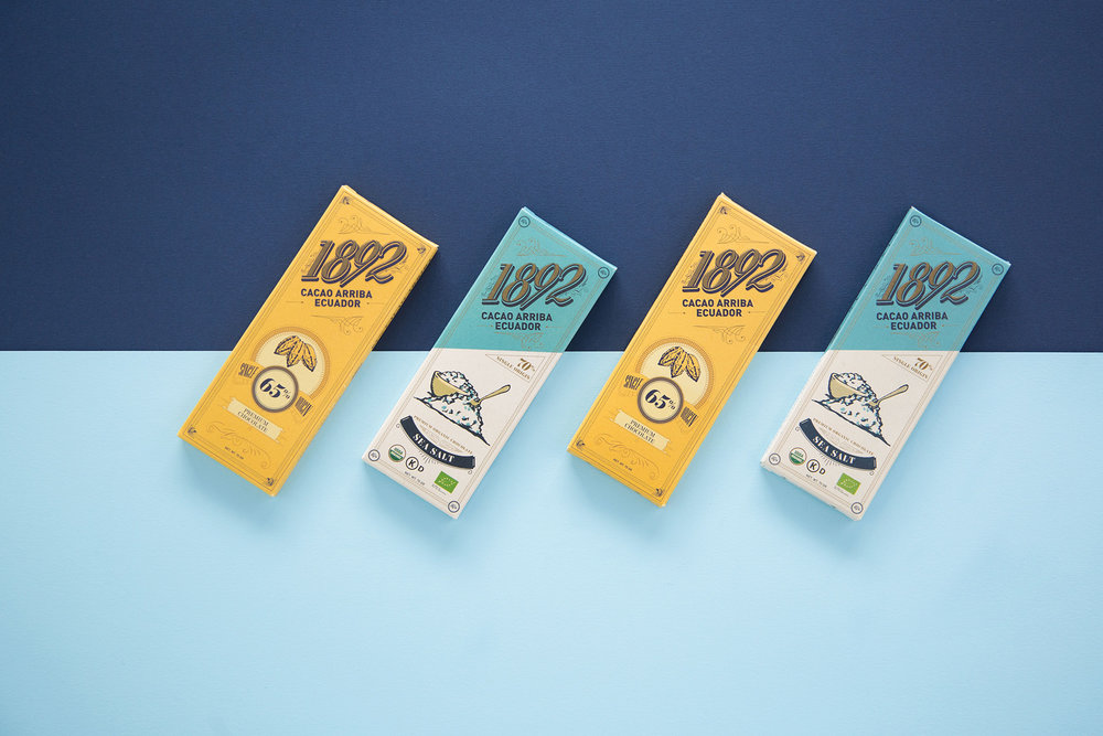 Дизайнеры изучили историю семейной компании и выяснили, что ей сотни лет. Еще в 1800-ых годах предки владельцев компании занимались выращиванием бобов какао. Бренд получил название «1892». Айдентика выполнена в винтажном стиле. Дизайн уводит покупателя назад во времена золотого века какао. Современные детали соединяют прошлое с настоящим.