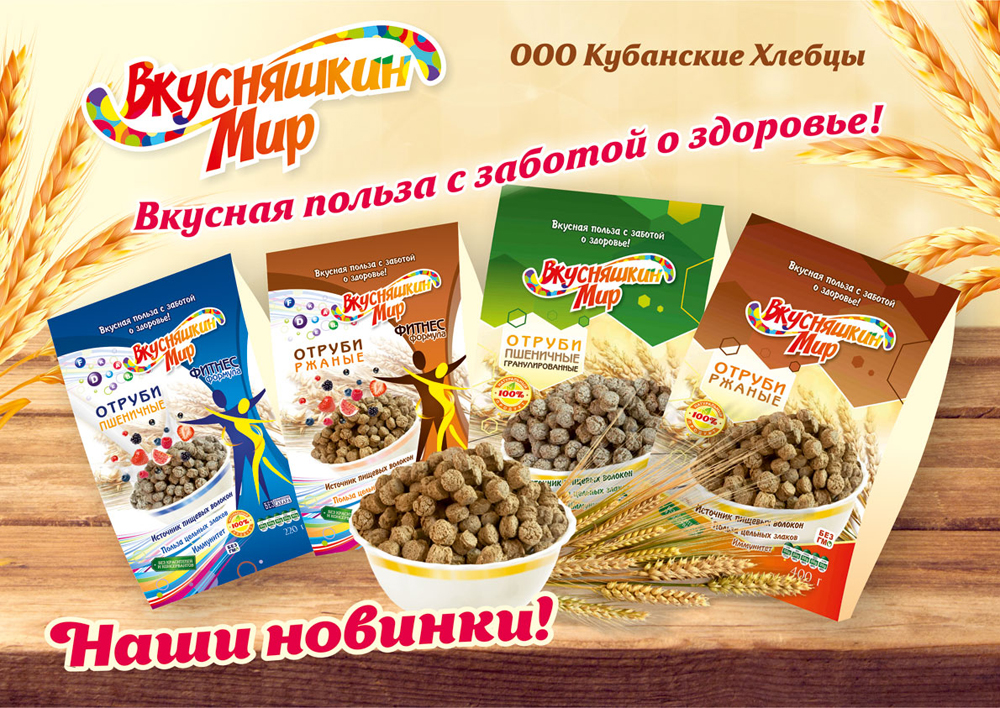 ООО «Кубанские хлебцы» представляет новинку под торговой маркой «Вкусняшкин мир» - отруби пшеничные и ржаные.