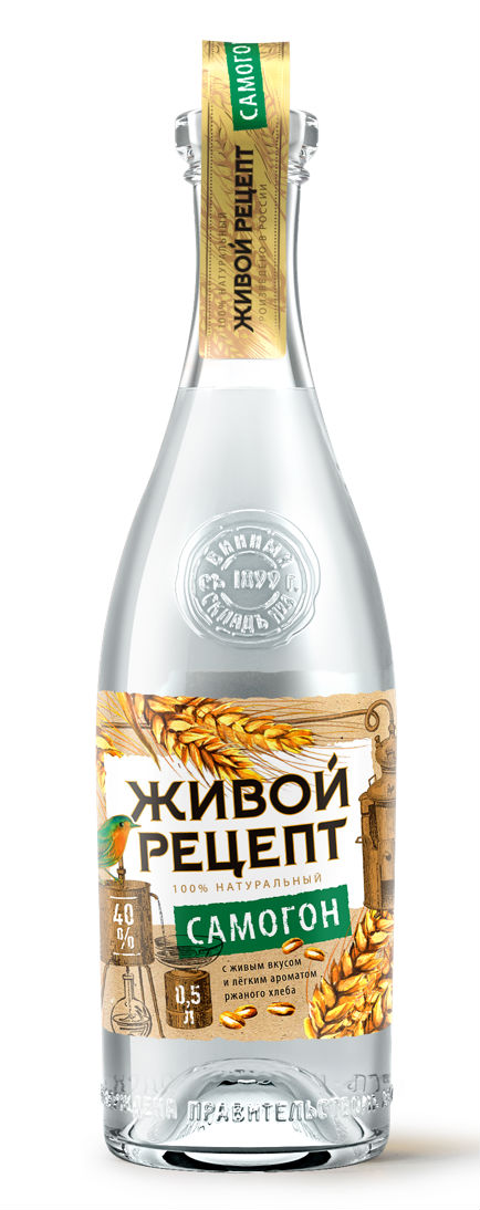 Первый розлив самогона состоялся в начале ноября, и до конца года продукция появится на полках магазинов. «Живой Рецепт» будет выпускаться в объеме 0,5 л., его крепость составит 40%, а рекомендованная цена на полке - 380 рублей.