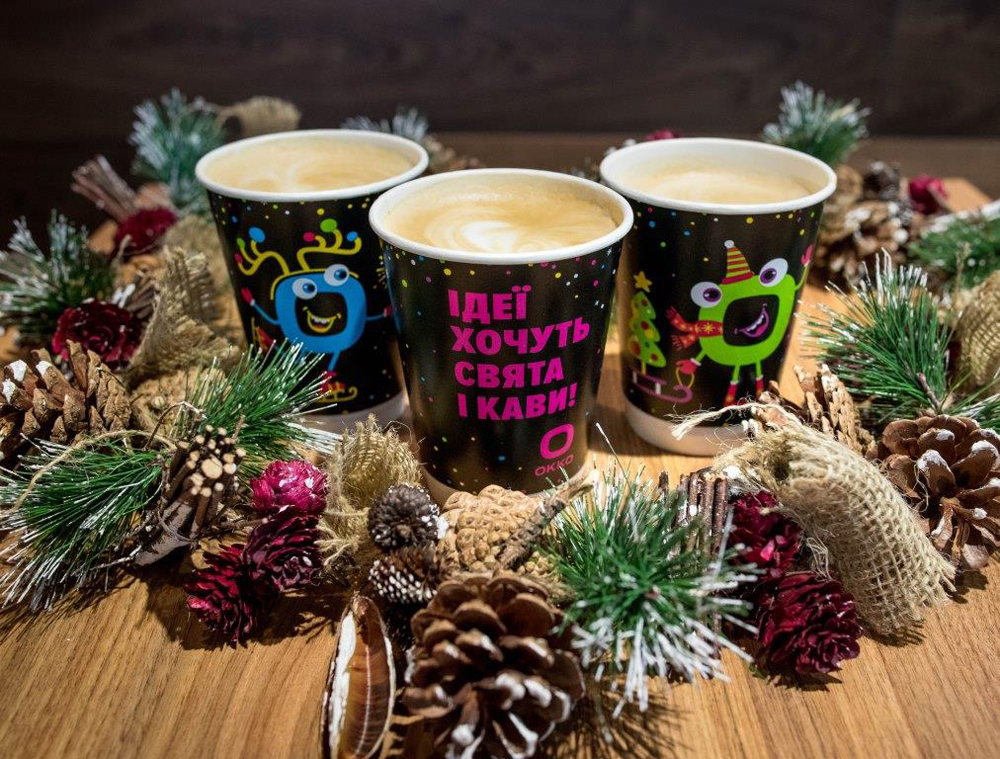 Кофейные стаканчики АЗК ОККО споют рождественские песни