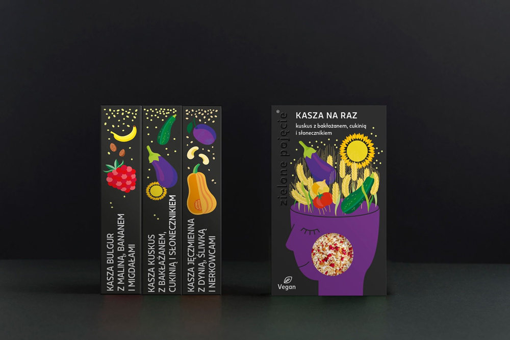 Green object – это бренд здоровой, высококачественной еды быстрого приготовления. Бренд нацелен на занятых молодых людей, у которых нет времени готовить еду, но которые предпочитают полезные, здоровые продукты питания. Дизайн упаковки создан в польской студии Podpunkt Studio.