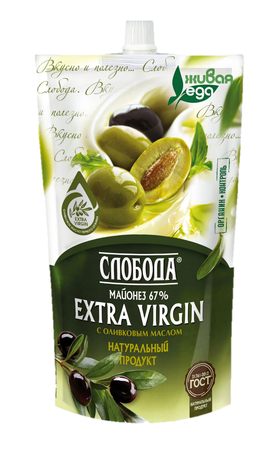 Новый продукт разработан с учетом предпочтений потребителей и продолжает развивать производство продуктов для «зеленой полки». «Слобода» с маслом Extra Virgin следует традиции производства майонеза на основе жидкого яичного желтка. Обладая прекрасной вязкостью, он, в отличии от яичного порошка, позволяет сохранить майонез по-домашнему густым, без использования эмульгаторов, стабилизаторов и крахмала. А современное оборудование и использование бережных технологий позволяют произвести майонез без консервантов и антиокислителей.