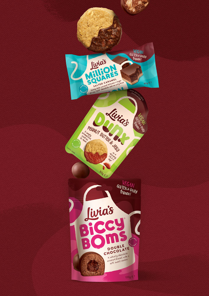 Livia’s выпускает сладости, в состав которых входят 100% веганские ингредиенты, не вызывающие аллергию. Новый дизайн призван соединить понятия здоровье и счастье. Миссия основательницы компании Оливии Волленбенд – «изменить облик кондитерских изделий».