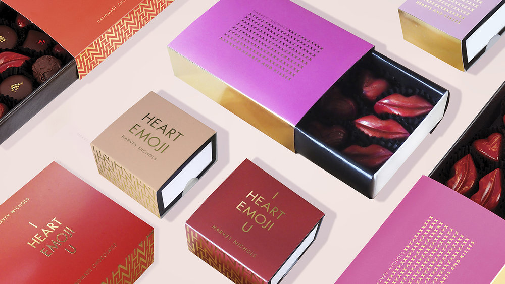 Британский ретейлер Harvey Nichols выпустил наборы шоколадных конфет под собственной торговой маркой ко Дню святого Валентина. Дизайн упаковки создавали в студии Smith&+Village.