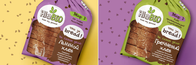 Друг от друга продукты в линейке отличаются цветом и графическими элементами, намекающими на состав продукта (гречневый хлеб — гречневые зернышки, льняной — зерна льна и т.д.), поэтому ориентироваться в разных вкусах HleBIO потребителю очень легко.