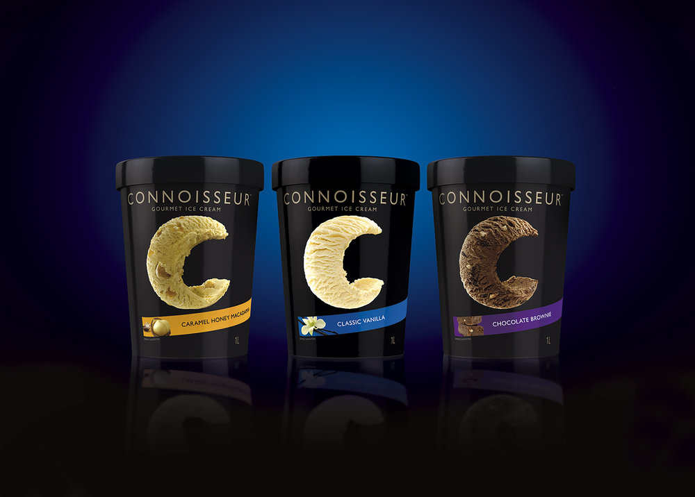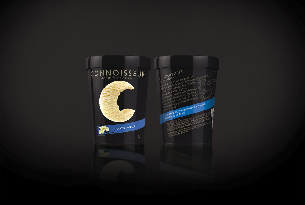 Австралийская студия Asprey Creative вдохнула новую жизнь в премиальный бренд мороженого Connoisseur. Дизайнеры сделали упаковку более современной, они добавили роскошь и драму.