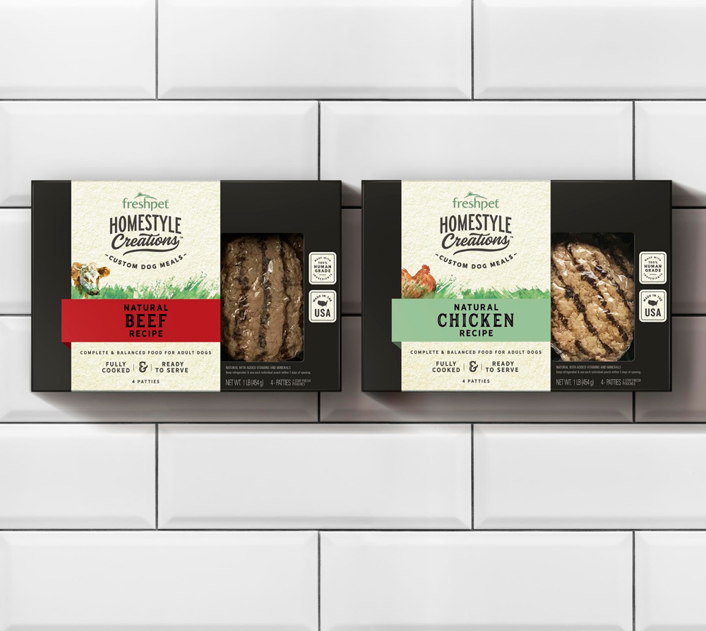 Для производителя собачьего корма Freshpet американское агентство Wallace Church & Co. разработало дизайн упаковки продуктов готовых к употреблению.