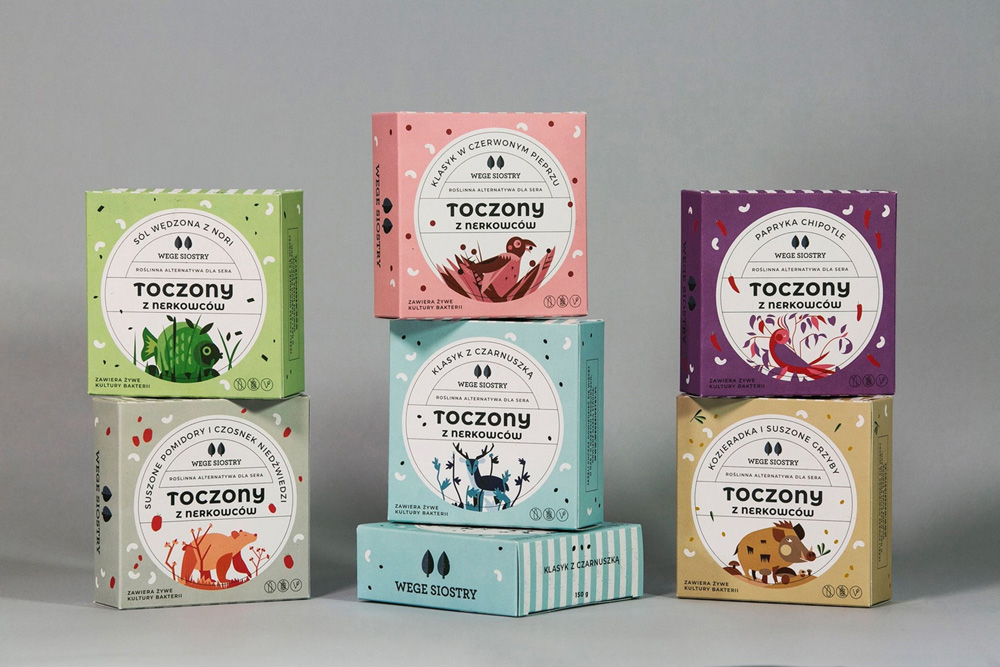 Vege Sisters – польский бренд веганских продуктов. В линейку входят сыры и крем из ореха кешью с разными добавками. Айдентика бренда и дизайн упаковки создавались в студии Podpunkt.
