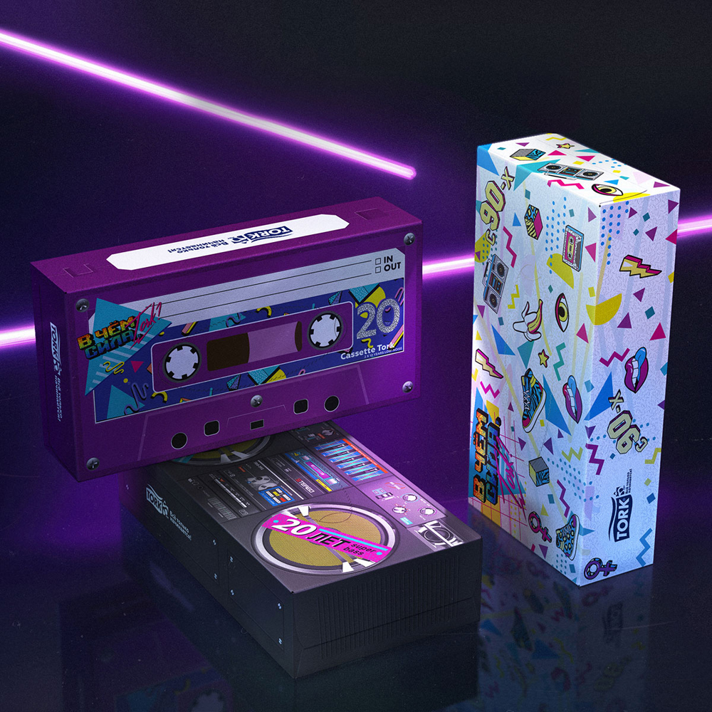 Бренд Tork пришел на российский рынок в 90-е, когда ощущение того, что «все впереди» было у всей страны. Для этой эпохи была характерна определенная визуальная стилистика – кричащая, дерзкая, эклектичная. Многие топовые дизайнерские тренды 2019 берут свое начало в 90-х.